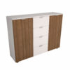 Tabletops crafted from 25mm Medium Density Particle Board (MDP). Connectivity box with ABNT standard outlets included and spaces for RJ11/45 connectors installation (not included). Edge finishing with 2mm PVC tapes installed using the high-performance hotmelt system. Side structures (legs) in portal-style carbon steel with leveling feet coated with epoxy powder paint.